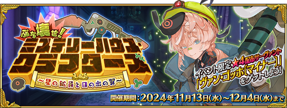 Published 2024年11月14日 at 567 × 213 in 『Fate/Grand Order』期間限定イベント「ぶち壊せ! ミステリーハウス・クラフターズ ~星の鉱員と日の出の翼~」開幕!そして、「Fate/Grand Order カルデア・サテライトステーション 2024-2025」最新情報も公開!.