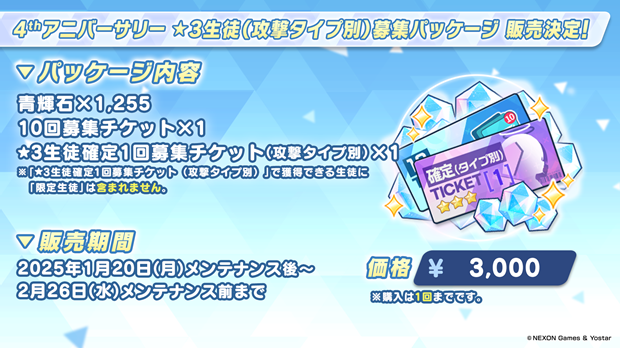 4thアニバーサリー★3生徒(攻撃タイプ別)募集パッケージ