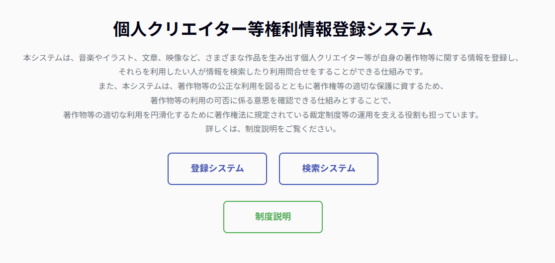 bunkatyu01 次へ → https://www.creator-rights.bunka.go.jp/ // ここに改行を追加 ?> https://www.creator-rights.bunka.go.jp/ 関連記事 No related posts.