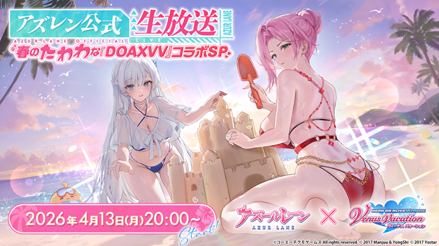 Published 2026年4月13日 at 620 × 348 in サングラスで勢ぞろい!気の早い夏を先取り!?「4月のアズレン公式生放送-春のたわわな『DOAXVV』コラボSP-」は相変わらずのギリギリを出演者全員で攻めまくる!?.