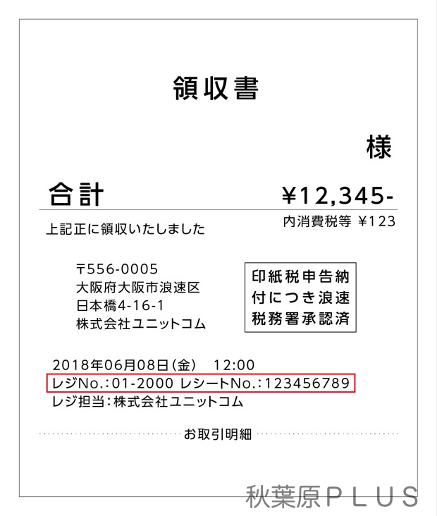 購入レシート レジNo. レシートNo. 記載場所