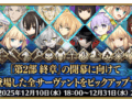 FGO PROJECT(有限会社ノーツ、株式会社アニプレックス、株式会社ラセングル)は、スマートフォン向けFateRPG『Fate/Grand Order』にて、本日2025年12月10日(水) 18:00よりこれまでに聖晶石召喚に登場したすべてのサーヴァント合計363騎をピックアップする全184種類の召喚を開催し、さらに過去に開催した6種類のフレンドポイント召喚も再開催する。また、「第2部 終章」メインビジュアルに登場するサーヴァントの限定概念礼装「英霊極点」全21種をピックアップする召喚や、「英霊極点交換チケット」を獲得できるログインボーナスや限定ミッションの追加、そしてすべてのクラスにおける「冠位戴冠戦」に挑む際の「ストーム・ポッド」の消費が0になるキャンペーンも開催。 続きを読む