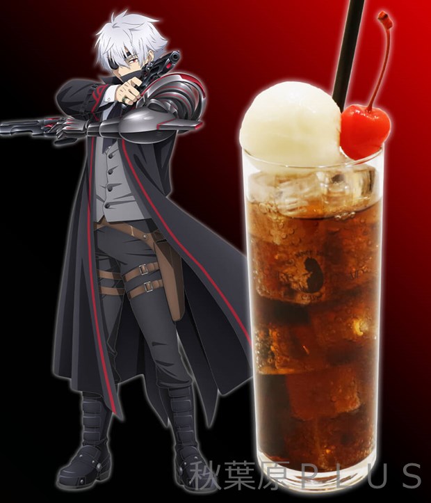 コーラで衣装の黒色を、ラフランスソルベで髪色、さくらんぼで赤い瞳を表現。