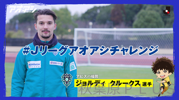 番組エンディングの実写コーナー「#Jリーグアオアシチャレンジ」には、アビスパ福岡のジョルディ クルークス選手が登場! クルークス選手が披露するスゴ技にもご注目ください。