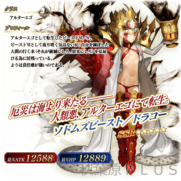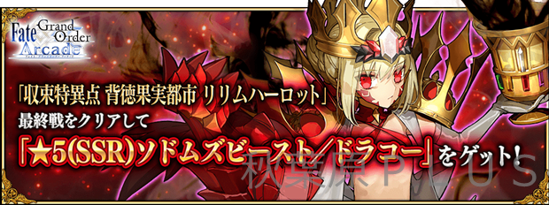 「★5(SSR)ソドムズビースト/ドラコー」の獲得に関する詳細は『FGO Arcade』公式サイトのお知らせをご確認ください。