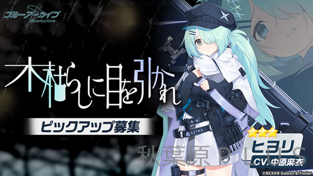 現在、★3新生徒「ヒヨリ」(CV:中原麻衣)のピックアップ募集が開催中。ヒヨリはアリウス分校、アリウススクワッド所属の小心者で物憂げな印象を与える生徒。自尊心が低く基本的にネガティブな性格で、自虐的な言葉を頻繁に口にするようだ。