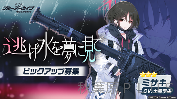 現在、★3新生徒「ミサキ」(CV:土屋李央)のピックアップ募集が開催中。アリウス分校、アリウススクワッド所属で、口数が少なく無愛想な印象のミサキ。他人にも自分自身にも興味が薄く、手首や首元には、何かを隠すように分厚い包帯が巻かれている。