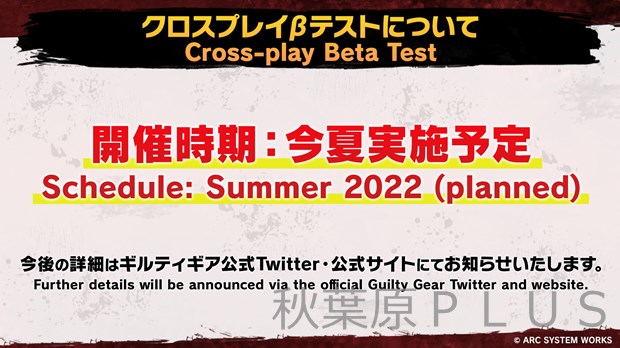 PlayStation4/5版とSteam版のオンライン対戦が可能になるクロスプラットフォーム機能実装へ向けて、今夏にβテストを実施予定。続報はギルティギア公式Twitter及び公式サイトにて公開予定だ。
