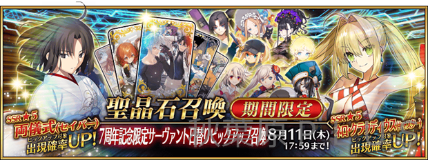 「7周年記念限定サーヴァント日替りピックアップ召喚」開催