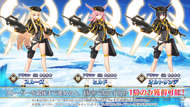 ※「★4(SR)スルーズ」「★4(SR)ヒルド」「★4(SR)オルトリンデ」に能力差はありません。