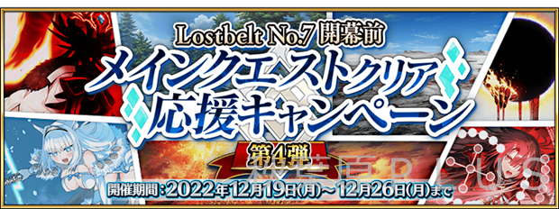 ■『「Lostbelt No.7」開幕前メインクエストクリア応援キャンペーン 第4弾』開催:https://news.fate-go.jp/2022/main_quest_clear_cp4/
