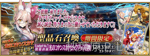 ■『「Lostbelt No.7」開幕直前 光のコヤンスカヤピックアップ召喚』期間:2022年12月19日(月)18:00~12月31日(土)23:59まで