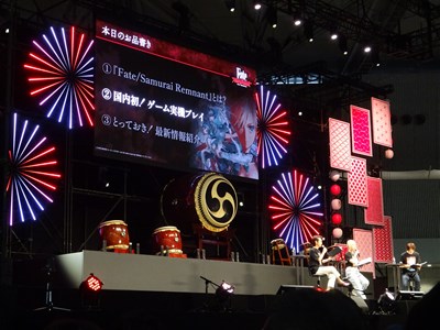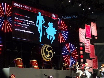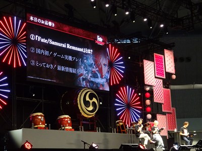 今回のステージでは3本の話題を紹介していく。ゲーム実機プレイが一番気なるところだが最初はFate/SRの紹介からとなった。