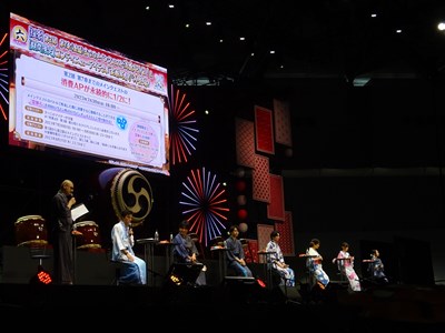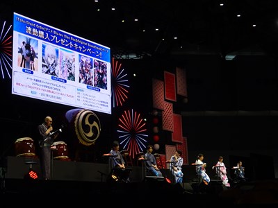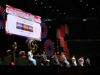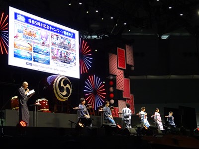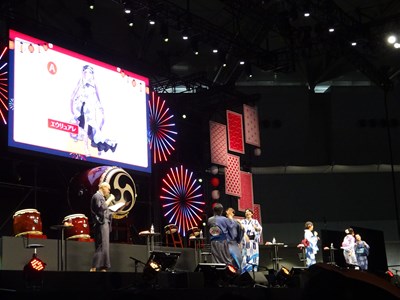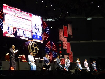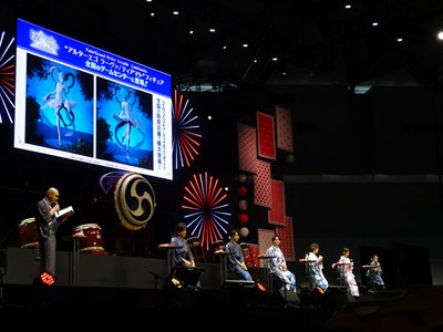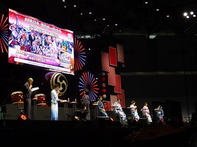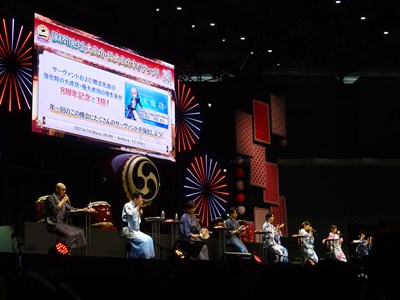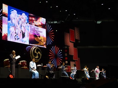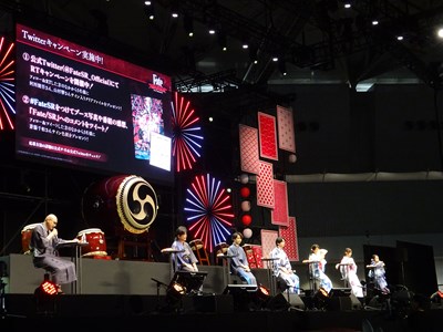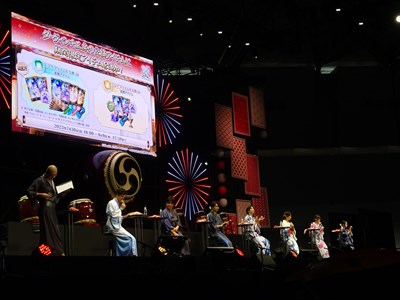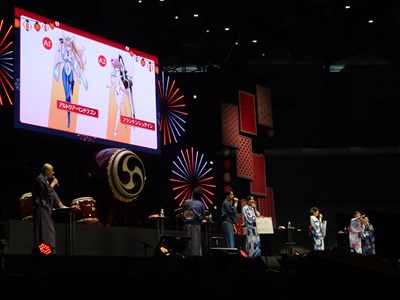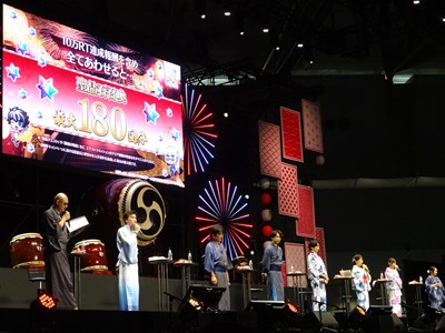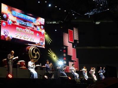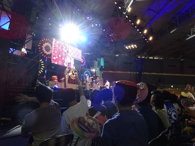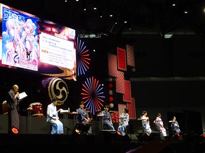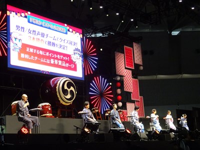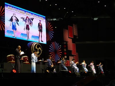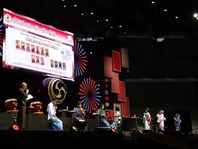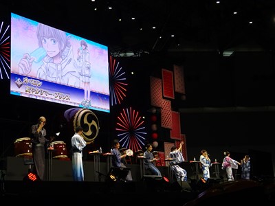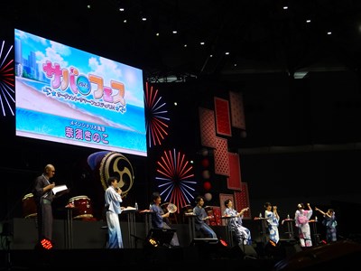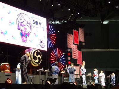 声出しOKと言う事で、各自登場するたびに会場から大きな声が聞こえてくる。悠木さん、高橋さん、川澄さん、島崎さん、伊東さん、中田さんが登壇した。キャスト全員浴衣姿での登壇となり夏祭りの雰囲気が嫌が王にも盛り上がってくる。