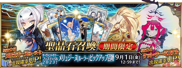 ■期間限定「サーヴァント・サマー・フェスティバル2023! メリュジーヌ(ルーラー)ピックアップ召喚」期間:2023年8月15日(火)18:00~9月1日(金)12:59まで