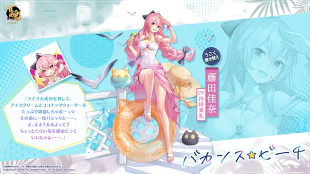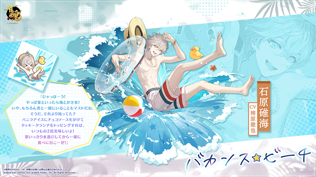 「八木 唯」(CV:小清水 亜美)、「サラ」(CV:M・A・O)、「四宮 夏生」(CV:福山 潤)、「七夕」(CV:植田 佳奈)のピックアップにあわせて、限定の新着せ替え「バカンス☆ビーチ」が登場。