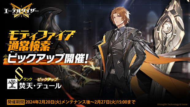 2024年2月20日(火)メンテナンス後より、通常検索にてSランクモディファイア「焚天・テュール」のピックアップを開催する。