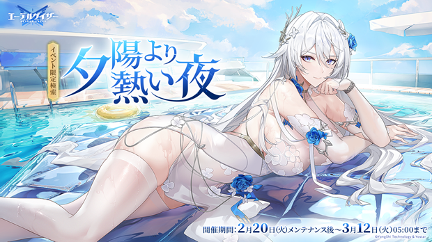 アプリゲーム『エーテルゲイザー』において、2024年2月20日(火)メンテナンス後より、期間限定イベント「夜空は赤く燃えて」の開催を公開した。また特殊検索「乾坤開闢」を実施する。