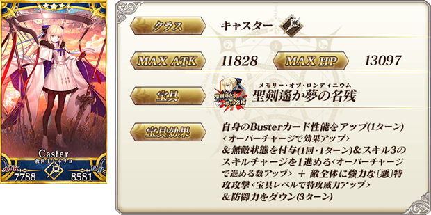 ※「アルトリア・キャスター」はサーヴァント名となり、クラスはバーサーカーとなります。