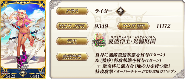 ※上記の「★4(SR)鈴鹿御前〔サマバケ〕」のセイントグラフは霊基再臨第2段階のものです。