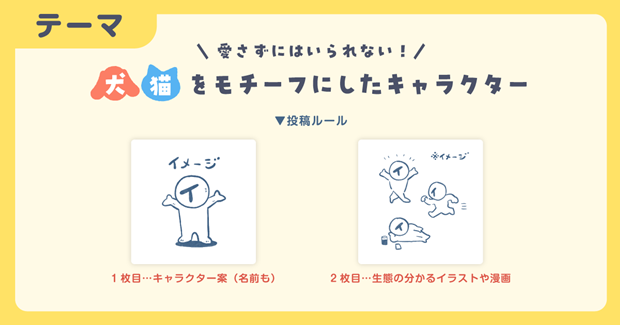 ■募集テーマ:「愛さずにはいられない!犬・猫モチーフのキャラクター」