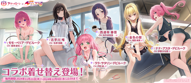 スマートフォン向けアプリ『アズールレーン』において、2024年11月21日(木)のメンテナンス後より、TVアニメ『To LOVEる-とらぶる-ダークネス』との期間限定コラボイベント「危険発明接近中!」を開催することを発表した。