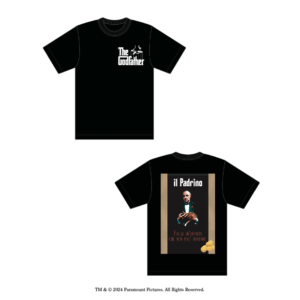 Tシャツ第一弾もファンにはたまらないデザインで今年7月に登場しました!全 8 種のデザインで製作され、それぞれが異なるデザインで、『ゴッドファーザー』の世界を色濃く表現しています。タイトルロゴは勿論、ドン・コルレオーネの睨みをきかせた表情、本作を象徴する名言である「I’m going to make him an offer he can’t refuse.」が描かれたTシャツ等、思わず手に取りたくなること間違いなし!(色:白&黒、サイズ:S、M、L、XL)