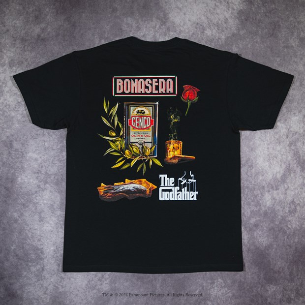 今回の3種類のプレミアムエディションTシャツでは、映画全体のテーマである権力、恐怖、裏社会の冷酷さを象徴する重要なシーンであり、観客に強い印象を与えた「馬の首」をデザインしたものや、「Louis Italian-American Restaurant」でのシーンをシチリアの情景を彷彿とさせる独特なアートを表現したもの、コルレオーネファミリーが運営するカジノをイメージし、背面にはドン・コルレオーネをモチーフとしたトランプの絵札が印刷されたデザインのものなど、ファンにはたまらないプレミアムなデザインを各100枚限定で用意した。