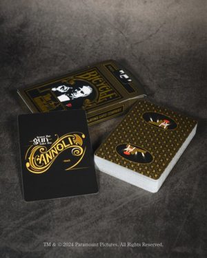 「ゴッドファーザートランプ」のデックはUSPC社製の最高級品であり、実際にラスベガスなどで使用されているカジノデックと同じ仕様でこだわりにこだわり抜いて制作されている。Jokerには劇中で起きた事件をモチーフとしたイラストが描かれており、さらにスペードのAには『ゴッドファーザー』のロゴが、スペードのKingにはドン・ヴィトー・コルレオーネの肖像が描かれています。そしてカードの裏面にはコルレオーネ一家が経営しているカジノが描かれており、細かな点まで『ゴッドファーザー』にこだわりぬいた、至高のトランプとして仕上がっている。その他にも、予備のブランクのカードとコレクション用のスペシャルカードが付属。スペシャルカードには劇中の有名な”あの”セリフが描かれています。映画ファンならずとも要注目!