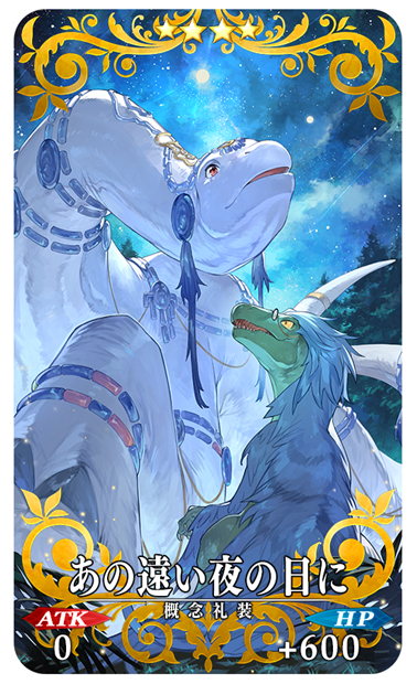 ※本召喚において、ストーリー限定の概念礼装「★4(SR)あの遠い夜の日に」は第2部 第7章「Lostbelt No.7 黄金樹海紀行 ナウイ・ミクトラン 惑星を統べるもの」をクリア済みの場合のみ排出され、ピックアップ対象となります。対象となるメインクエストをクリアしていない場合はピックアップ対象外となり、本召喚では排出されません。