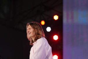 「日本で食べ歩きをする番組をやったら最高だよね」と、日本の各地で食べ歩きをする旅番組を渇望。『モモアさん in Japan』と自ら番組名まで提案し、取材に来ているマスコミにも番組の実現を訴えた。最後、場内にいる観客に向かって「みんなとハグして写真を撮りたい」と日本のファンへの愛を伝えると、モモアおなじみの両手をあごの下に添える愛らしいポーズを披露。包容力のあふれるジェイソン・モモア氏のあたたかい人柄が伝わるステージとなった。続いて全身ピンクの愛らしいファッションでアンセル・エルゴート氏がステージに登壇。