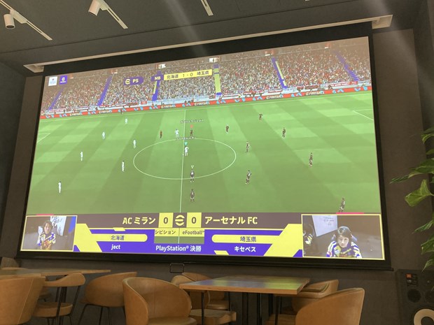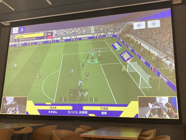 最後は「eFootball」の決勝となる。北海道から楓翔選手とject選手の2名が、埼玉代表はネオぽん選手とキセペス選手が登場し、試合へと進む。試合はモバイルとPSの獲得点数の合計得点で勝敗を決定する。同点の場合は三戦目がPS5で行われることとなる。まず一戦目はモバイルでの戦い。モバイルは試合の時間が短いという事なので、その部分がどのような試合展開に結び付くのかが気になるところだ。モバイルは楓翔選手VSネオぽん選手の戦いとなった。開始25分時点でいきなりネオぽん選手側にレッドカードが出てしまう。一人減ってしまったネオぽん選手、どのように戦っていくのだろうか? 楓翔選手に押される感じがあるものの、ネオぽん選手は果敢に攻めの姿勢で攻めまくる。前半戦は0:0で終了となった。続いて後半戦。いきなり後半スタートすぐにネオぽん選手がゴールまで攻める! しかし防がれ逆にゴールを決められた!と思ったらオフサイド。その後、仕切りなおすもパスをしっかり回して楓翔選手が先にゴールを決める。その後ネオぽん選手もゴールを狙うも外してしまう開始85分。そのまま試合終了となり次のPSへの試合へと進んでいく。この時点で北海道:埼玉は1:0で北海道リード状態となる。