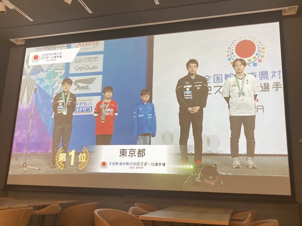 第3位は300Pt獲得の埼玉県となった。第2位は325ptの北海道、そして優勝は355pt獲得の東京都となった。ぷよぷよの得点がかなり効いたようだ。中間発表を見ていて東京が負けていたので東京の優勝に貢献できてうれしいです、とともくん選手。総合優勝の輝いた東京チームには優勝旗が授与された。なお、大阪が4位、会場となった佐賀は5位となった。