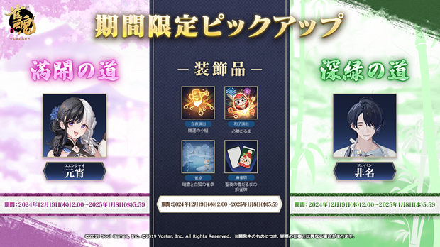 新雀士「元宵(ユエンシャオ)」、「非名(フェイミン)」が登場!特定雀士・新装飾品ピックアップを開催!