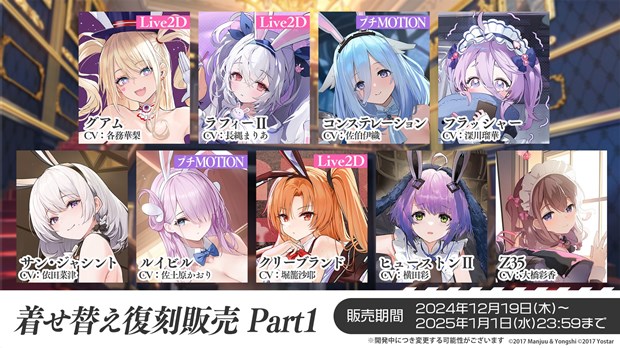 バニーガールなどをテーマにした新規着せ替えアイテムが登場!復刻販売や常設追加も実施!