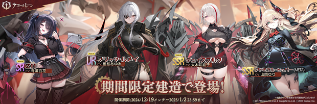 スマートフォン向けアプリ『アズールレーン』において、2024年12月19日(木)のメンテナンス後より、期間限定イベント「星降る夕影の残光」を開催することを公開した。またあわせて、新規UR艦船「フリッツ・ルメイ」などが登場する期間限定建造や、着せ替えアイテムの追加・復刻販売等も実施する。