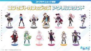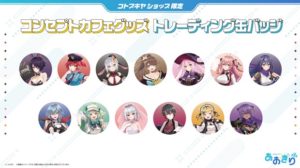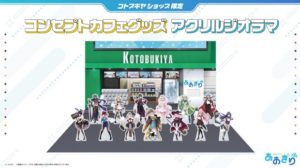 コラボ期間中の三店舗にて、『あおぎり高校』×『コトブキヤ』のコラボビジュアルをあしらったオリジナルグッズの販売を実施! コラボビジュアルでは、メンバー全員がコンセプトカフェの店員風姿で登場。定番のアクリルスタンドやトレーディング缶バッジなど、様々なグッズを取り揃える。