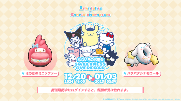 アプリゲーム『アークナイツ – 明日方舟 -』(以下、アークナイツ)において、2024年12月20日(金)16:00よりサンリオキャラクターズとのコラボキャンペーンの開催のお知らせが届いた。