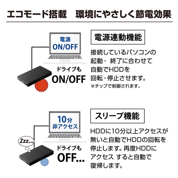 パソコン工房セレクト商品『2.5インチ SATA SSD/HDD ケース ブラック』は高速データ転送 10Gbps USB 3.2 Gen 2接続対応の2.5インチ SATA SSD/HDDケース。対応ドライブは7.5/9mm厚 SSD/HDD SATA両対応、容量4TBまで対応。開閉ロックスイッチ搭載のスライド開閉デザインで、ホットスワップ、プラグ&プレイ対応。接続しているパソコンの起動・終了に合わせてHDDを回転・停止させる「電源連動機能」やHDDに10分間アクセスが無いと自動でHDDの回転を停止する「スリープ機能」も搭載している。