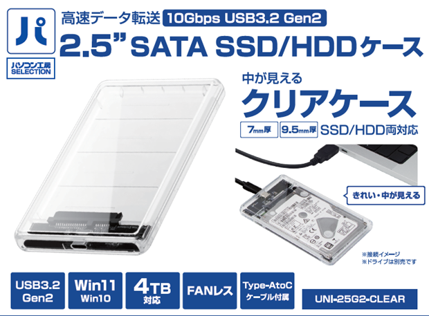 パソコン工房セレクト商品『2.5インチ SATA SSD/HDD ケース クリア』商品情報