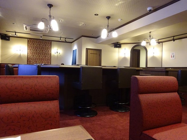 場所は秋葉原の最北端に位置する。店内は地下にあり、今回のコンセプトである「魔界にある一流で優雅なヴァンパイアを養成するスクール『Twilight Rouge』の談話室」が店内のイメージとなっており、外界と切り離された秘密サロン感のある立地となっている。お客様は「先輩」という立ち位置でスクール卒業生として母校の談話室に帰ってくるのをお迎えする、というイメージという事だ。店舗は上坂すみれプロデュースとなっており、中央のバーカウンターや私物を展示した額が飾らたりと強い思いが感じれる店内となっている。