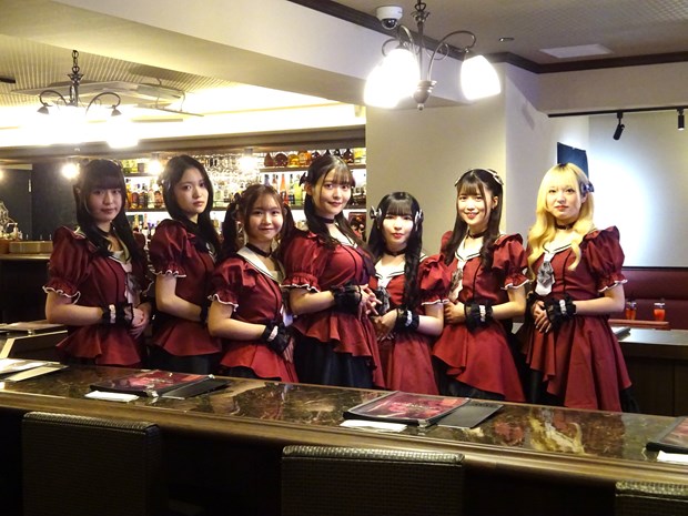 ヴァンパイア候補生(キャスト)がオーダーを取りに来る。ちょっと不慣れな後輩なので、ぜひ暖かく見守ってほしい。ヴァンパイア候補生たちの衣装もなかなかこだわっており、アシンメトリーなスカート部分やエンジに黒の色合いなど、こだわりのポイントが盛りだくさん! そしてスカーフの色は紫色は生徒会カラー、1年生はイエロー、2年生はピンク、3年生はラベンダーと変わるという事なので注目したい点となっている。