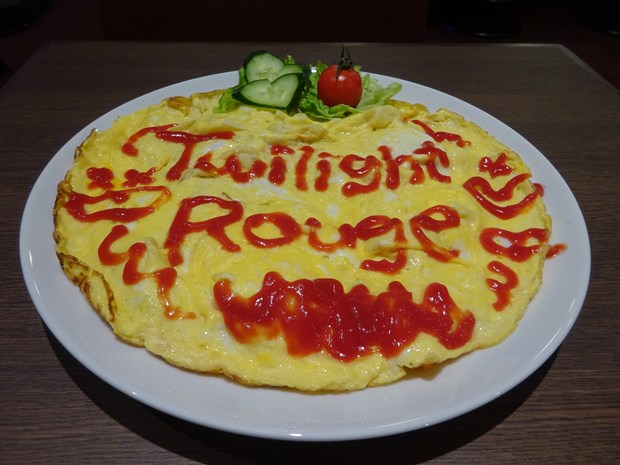 店内メニューには「お酒を出したい」という思いもあるとの事で、ヴァンパイアをコンセプトにすることで無理なくメニューに掲載できる、という話が出るくらいお酒のメニューも気合が入っているようだ。今回はメニューからトワイライトガーデンとオムライスを選択。やっぱりド定番オムライスは外せない!