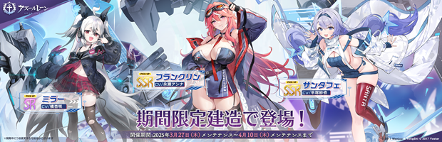 2025年3月27日(木)メンテナンス後より、SSR空母「フランクリン」、SSR軽巡洋艦「サンタフェ」、SR駆逐艦「ミラー」が登場する期間限定建造が開催される。この機会にぜひお迎えしよう!