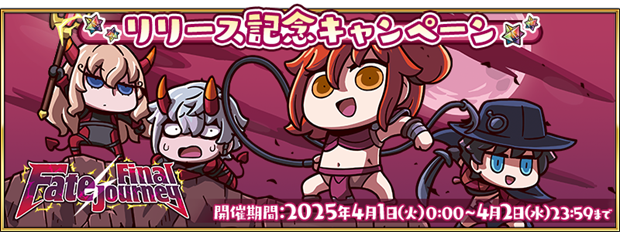 2025年4月1日(火)より「Fate/Final Journey」がリリースされたことを記念して、『「Fate/Final Journey」リリース記念キャンペーン』を開催。