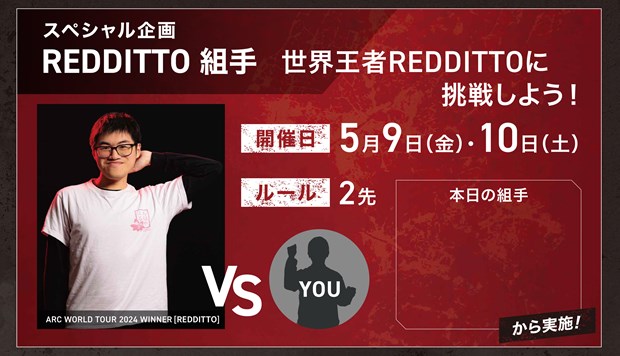 「ARC WORLD TOUR 2024」GGST部門にて世界チャンピオンに輝いたREDDITTO選手をゲストにお呼びした組手イベントを開催する。GGST世界王者のREDDITTO選手に挑戦したいという腕に覚えのある方は、ぜひ参加ください!