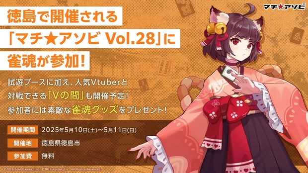 対戦型麻雀ゲーム『雀魂-じゃんたま-』において、2025年5月10日(土)~5月11日(日)に徳島市で開催されるイベント「マチ★アソビvol.28」に出展することを発表した。
