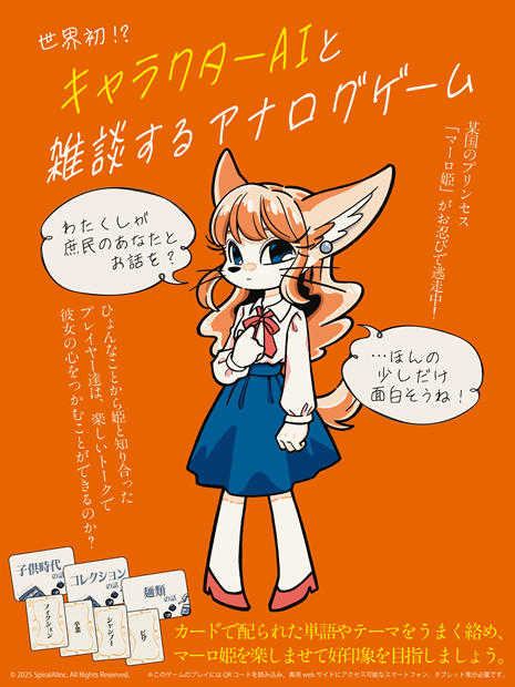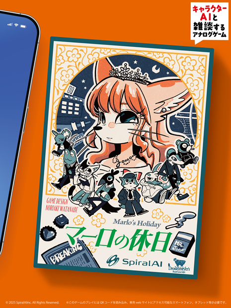 大規模言語モデルなどのAI技術を用いたサービスを開発するSpiralAI株式会社(本社:東京都千代田区、代表取締役:佐々木雄一、以下「SpiralAI」)は、リアルタイムで会話を楽しめる新作アナログゲーム『マーロの休日』を、2025年5月17日(土)・18日(日)に開催される「ゲームマーケット2025春」にて先行販売を行う。一般販売は2025年5月29日(木)より開始予定。