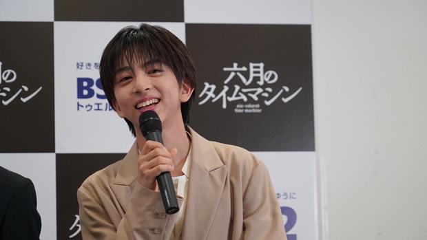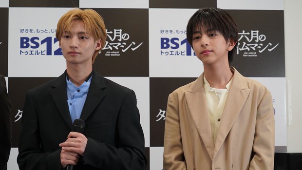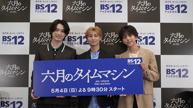 90年代の田舎町を舞台にした、“これから起きる幼なじみの死”を防ぐため、2人の兄弟と4人の仲間がタイムリープを繰り返し事件の真相へと迫る青春SFミステリー、「六月のタイムマシン」(BS 12 トゥエルビにて5月4日より放送)。4月28日に都内にて、放送直前記者会見が実施され、主演の志賀李玖、共演の八神遼介、松本大輝が登壇した。