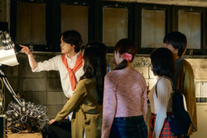 話題の推理型体験ゲーム❝マーダーミステリー❞の人気作「八月のタイムマシン」の実写ドラマが、現在BS12トゥエルビにて日曜よる9時30分より放送中。また、TVer、U-NEXTほか配信サイトでも、ドラマを楽しむことができる。第三話の場面写真が到着した。